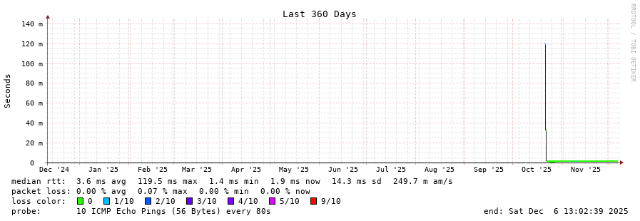 traceroute to 173.246.100.11 (173.246.100.11), 30 hops max, 60 byte packets - Generated at 2025-12-06 13:00:01