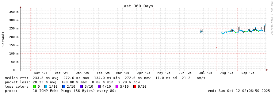 traceroute to 216.218.221.6 (216.218.221.6), 30 hops max, 60 byte packets - Generated at 2025-10-12 00:45:01