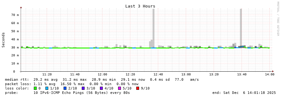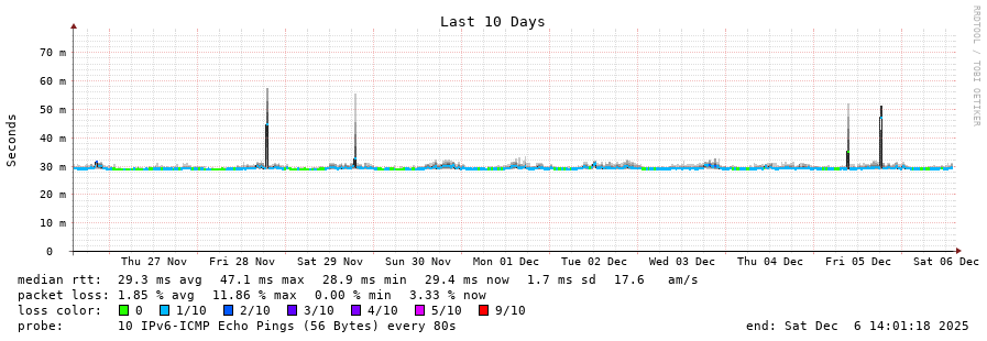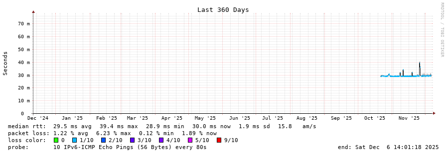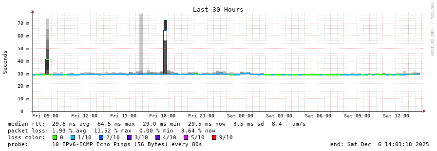 traceroute to 2c0f:5400:2:15::1 (2c0f:5400:2:15::1), 30 hops max, 80 byte packets - Generated at 2025-12-06 13:45:01