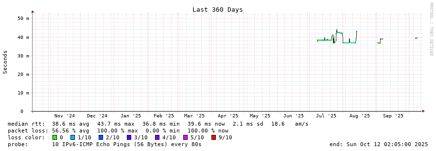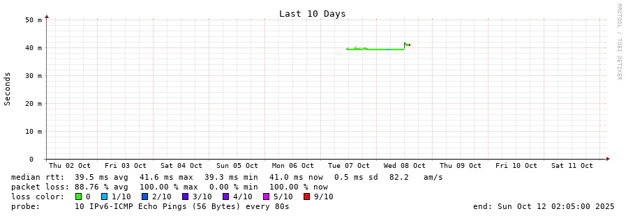 traceroute to 2001:690:1fff:1600:eade:27ff:fec9:67ec (2001:690:1fff:1600:eade:27ff:fec9:67ec), 30 hops max, 80 byte packets - Generated at 2025-10-12 01:15:01