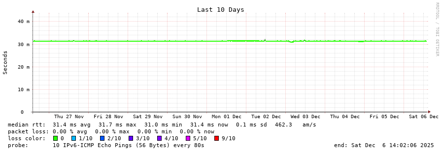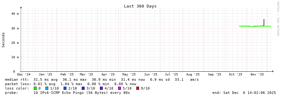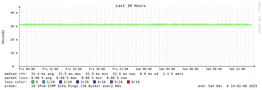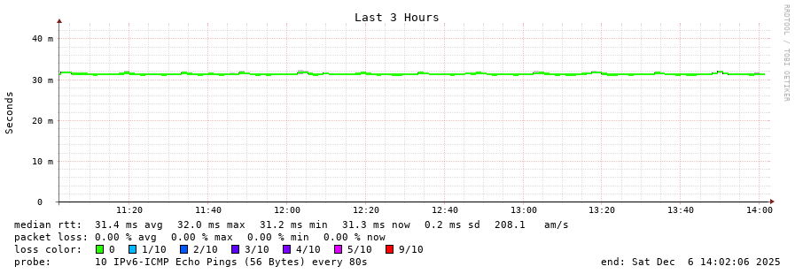traceroute to 2001:b68:d::28 (2001:b68:d::28), 30 hops max, 80 byte packets - Generated at 2025-12-06 13:45:01