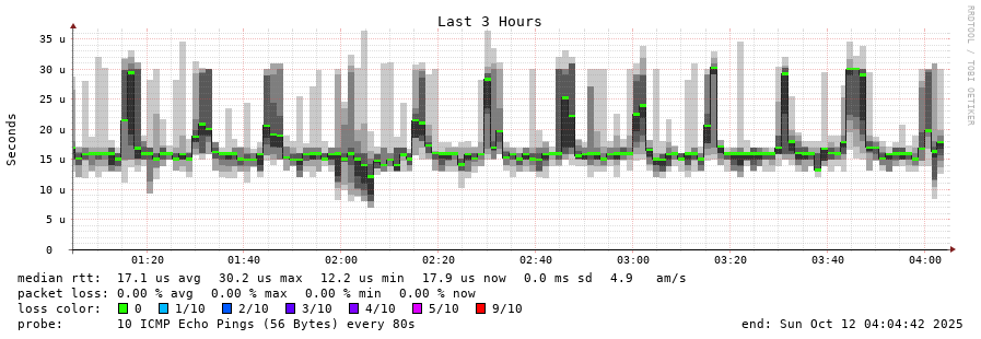 traceroute to 57.130.8.3 (57.130.8.3), 30 hops max, 60 byte packets - Generated at 2025-10-12 04:00:01 3 > ns3038033.ip-57-130-8.eu (57.130.8.3) [AS16276] 0.028ms 0.019ms 0.008ms