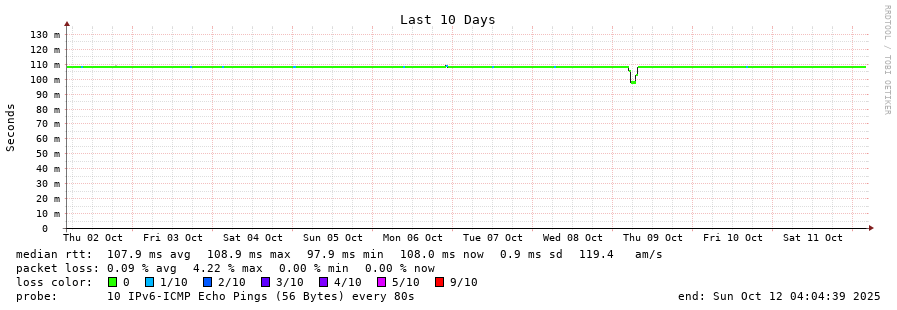 11 > 2604:2dc0:304::2:0:1ce (2604:2dc0:304::2:0:1ce) [AS16276] 107.942ms 107.928ms 107.933ms